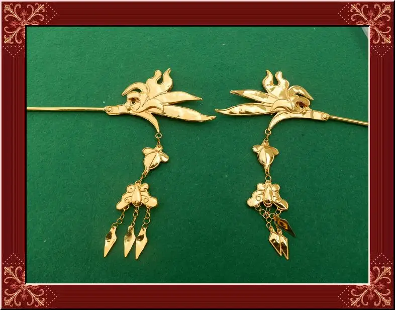Gold Plated Miao Silver Pinach Pair of Hair Sticks Hanfu Accessories Traditional Antique Pinach Art