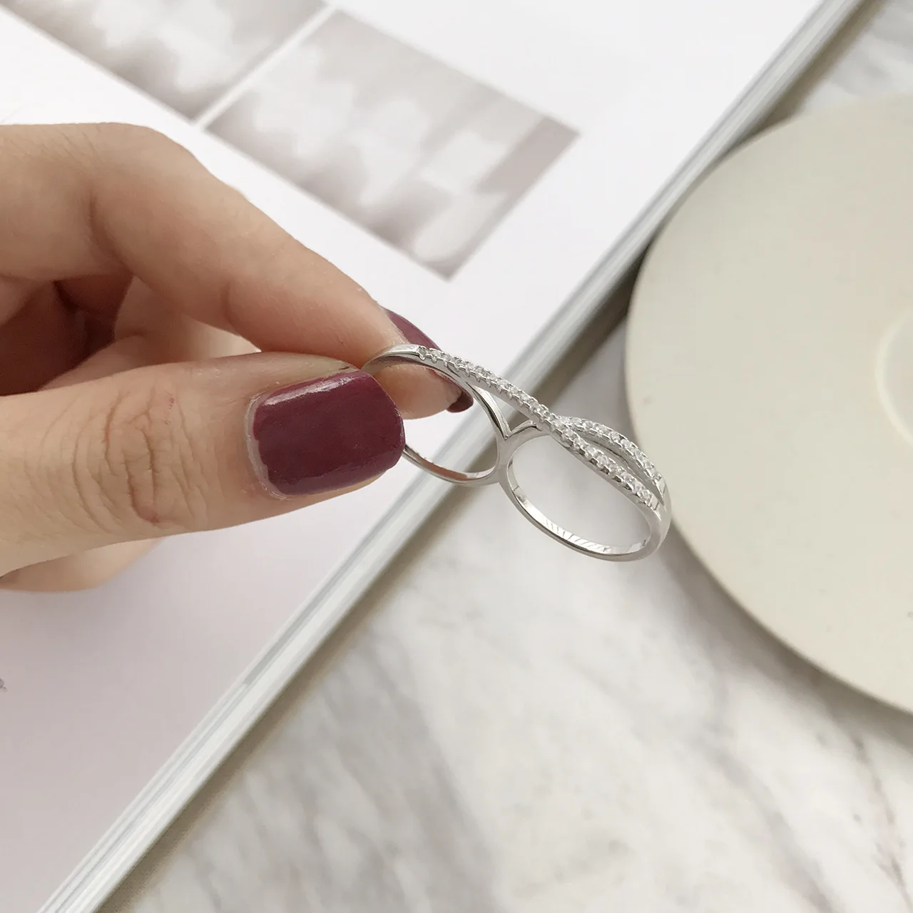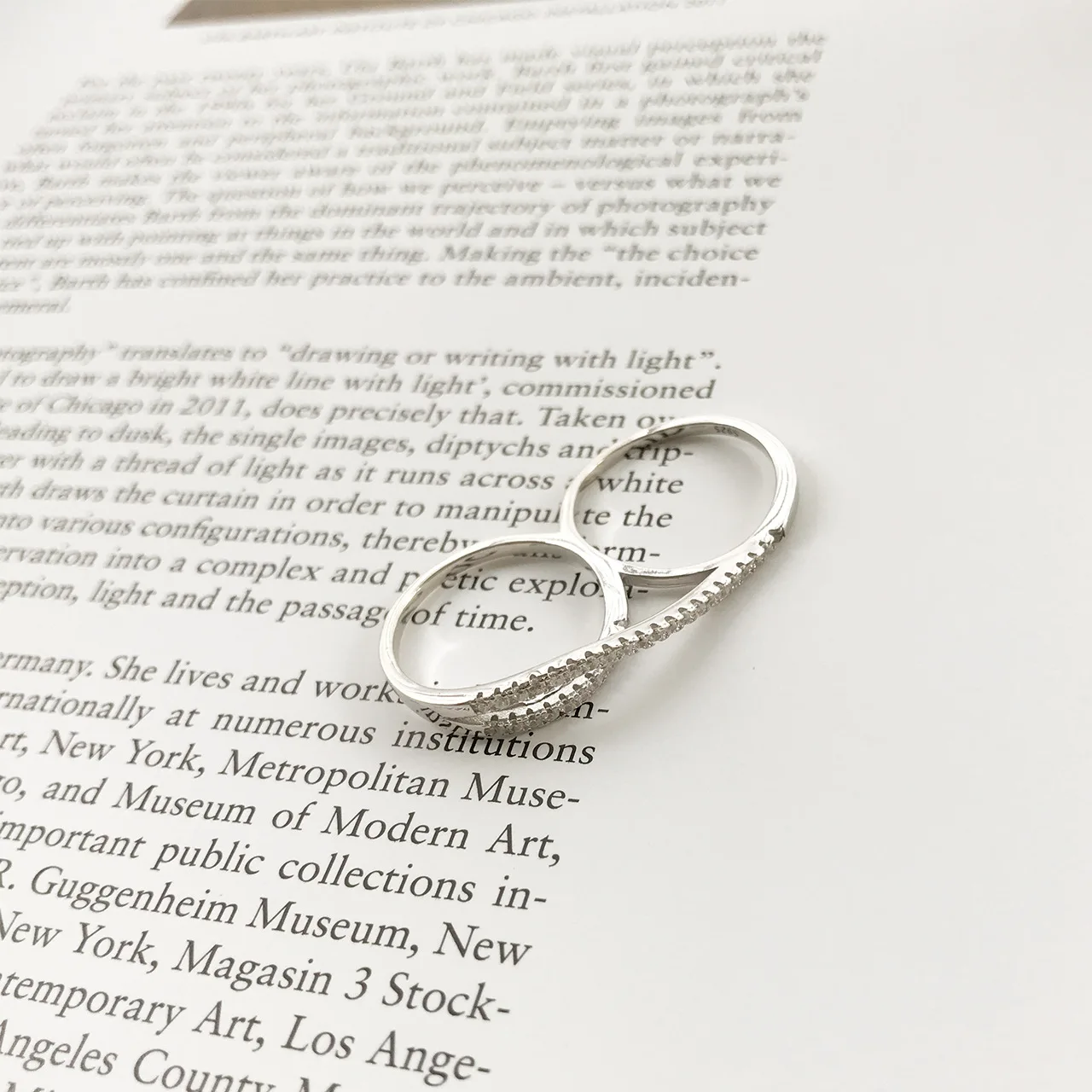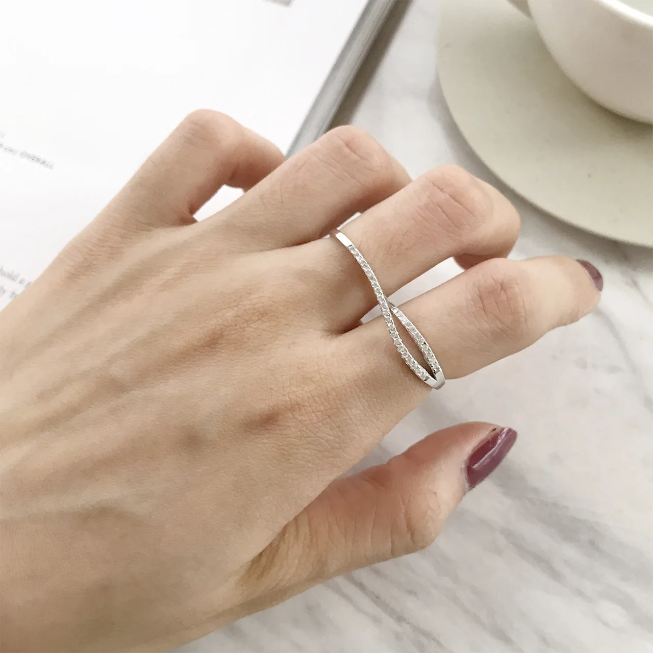 South Korea Star Celebrity Style 925 Sterling Micro Zircon Double Ring Rings Jewelry Small Accessor