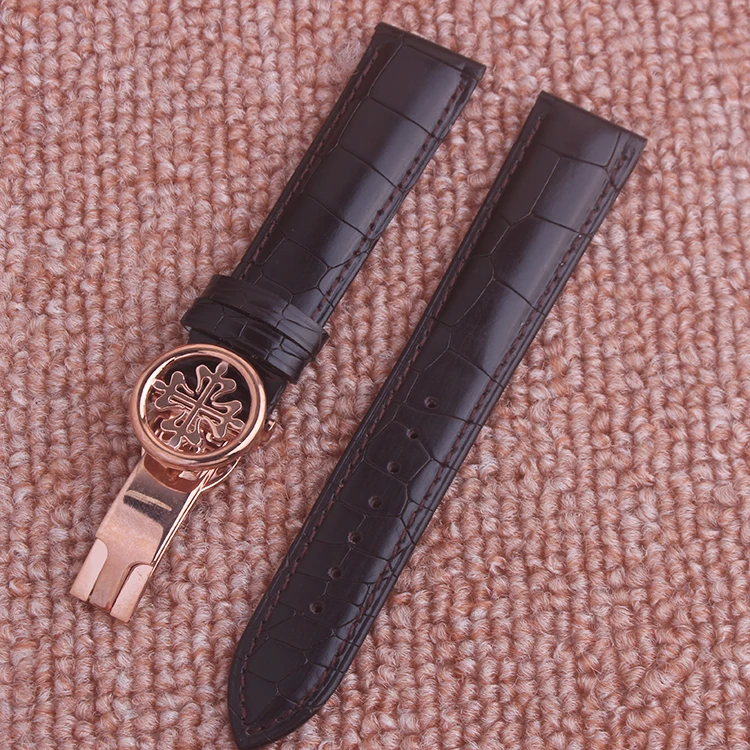 Watch accessories black genuine leather watchband watch belt strap wristwatches band for Patek 20mm