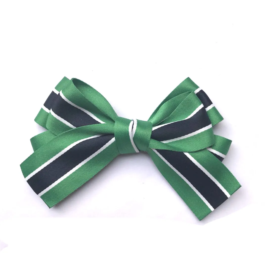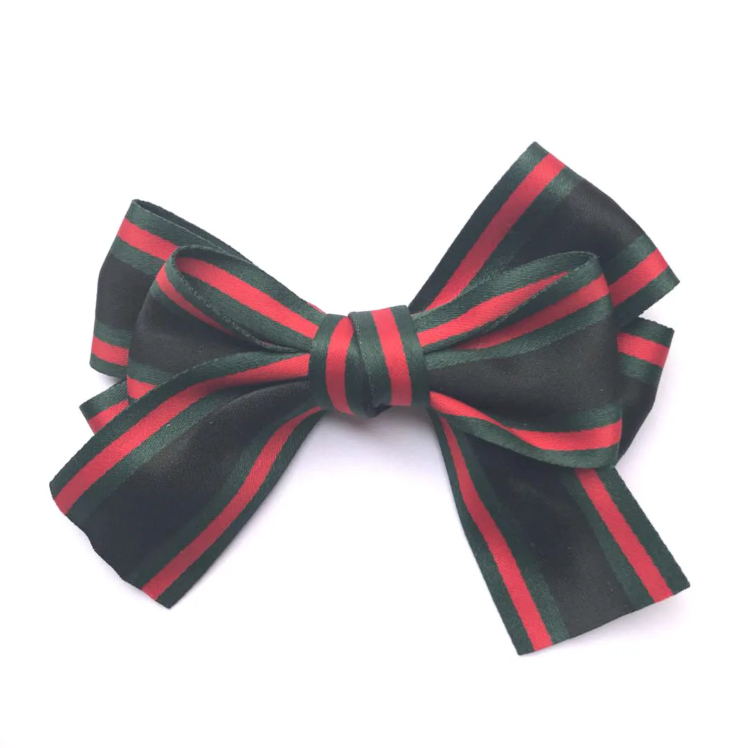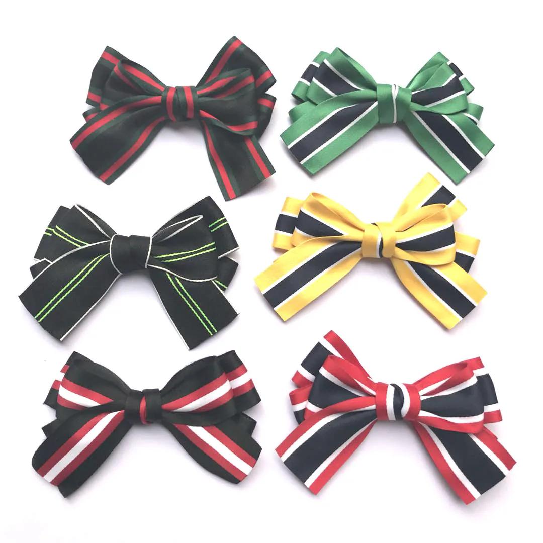 BEST South Korea Barrettes Head Clip Simple Retro Fabric Ribbon Stripes Bow Spring Ponytail Clip Horizon