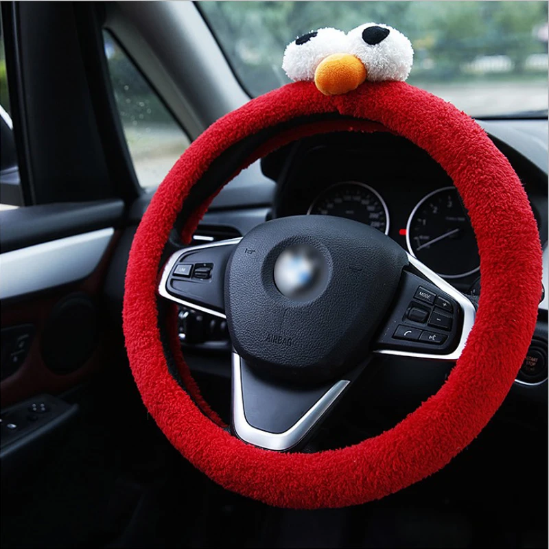1 PC Funny Plush Big Eyes Chicken Car Steering Covers Autumn Winter 38cm Cute Animal Warm Steering